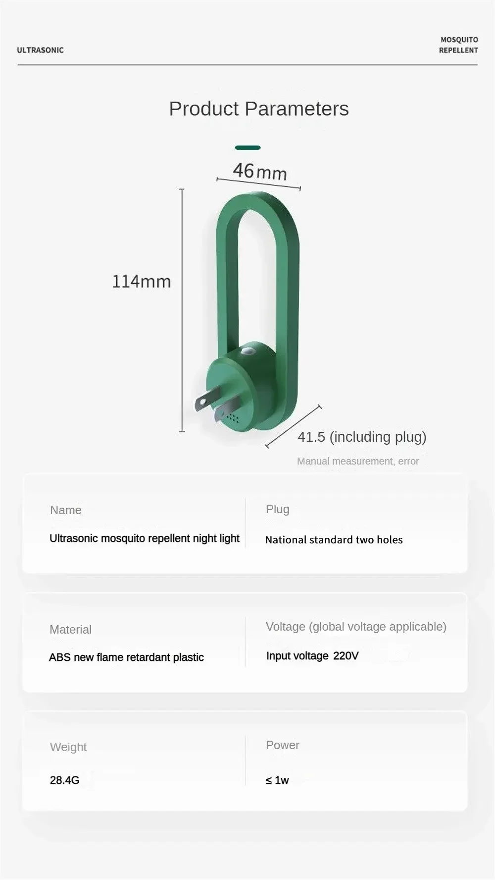 Nome: Ultrasonic Mosquito Repelente Night Light